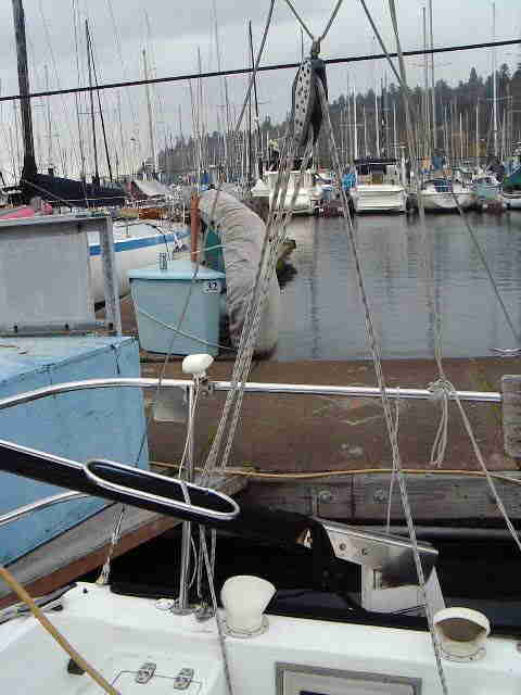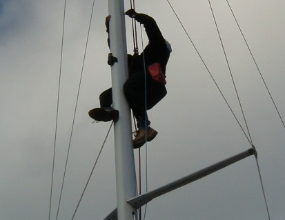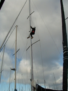 inspection, replaced check stay hardware. Climbing up the mast in 30 degree