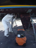 decking where stanchion pulled away. Hauled boat out and vacuum sanded