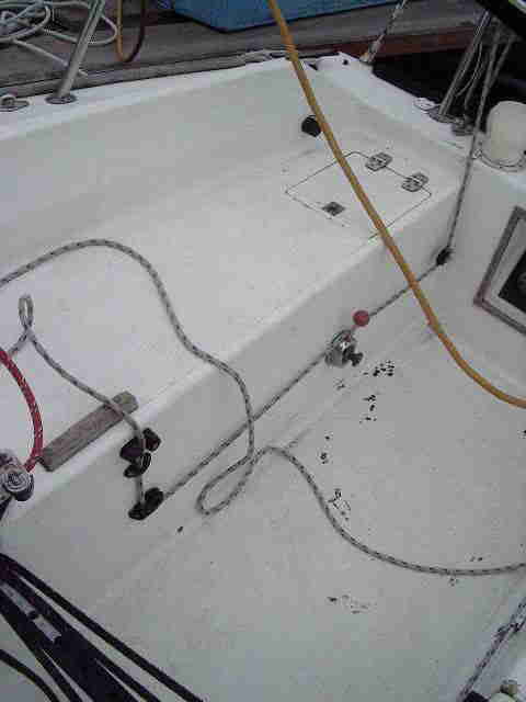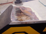 Reinforced decking where stanchion pulled away. Hauled boat out and